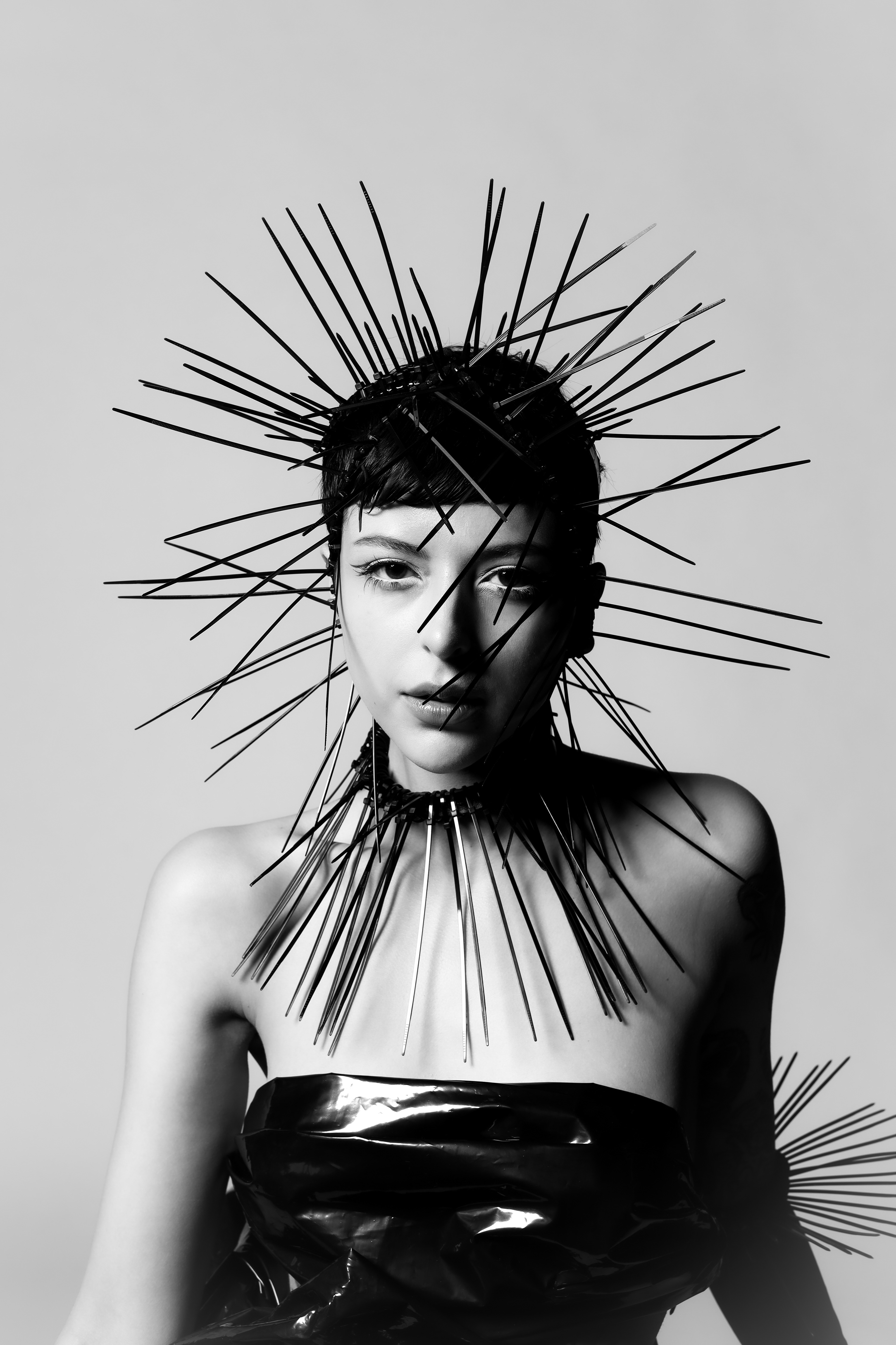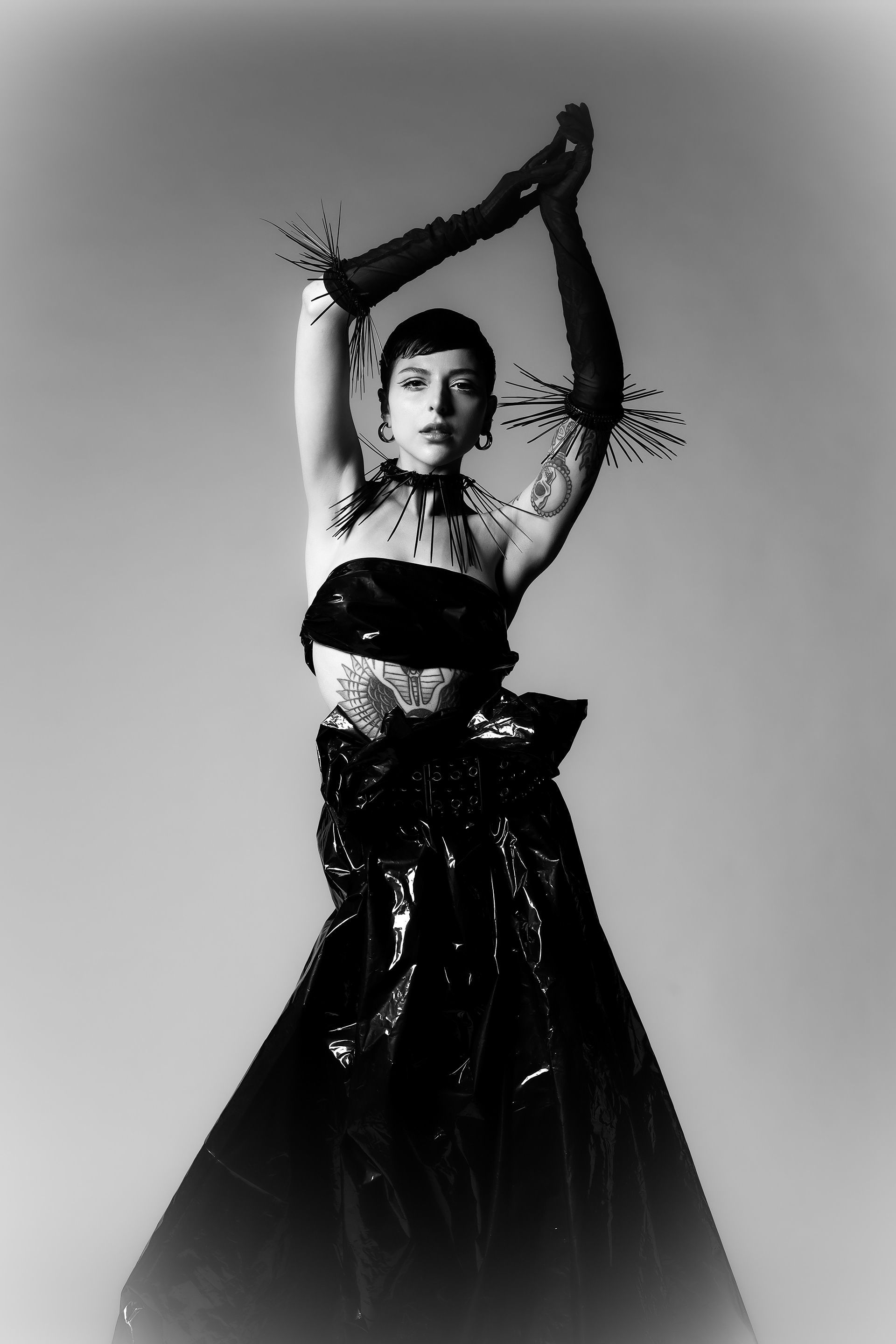 concept made out of plastic and trash. recycled "trash couture" as a critical way of seeing the excessive amount of waste in the fashion industry.